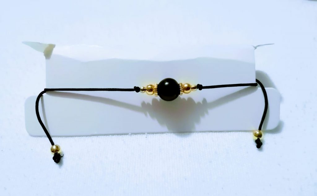 Pulsera de hilo con piedra de Turmalina negra pulida. Repelente contra la energía negativa.